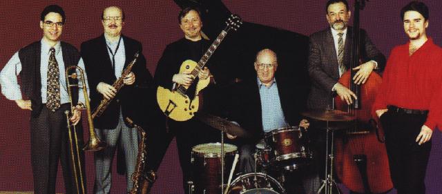 The Peter Turner Quintet and TrioFrom left to right - Peter Turner, Gerry Helke, John Burrett, Glenn Robb, Chuck Pierce and Josh Hopkins Biographical Sketches Peter Turner ~~~~~~~~~~~~ As a kid in Pembroke, Ontario, Peter Turner, a young trombonist, had an early interest in the Big Band era and other music of the first half of the 20th century. This was sparked through the influence of Linda Casselman who introduced him to school bands and Gordon Tapp, who founded the Pembroke Legion Dance Band in 1980. Since 1988, Peter has been known for his work with the well known Derek Robertson Jazz Band which has performed hundreds of engagements in its Ottawa home base and across Canada. He has also filled in with the Apex Jazz Band and with virtually every other dixieland and vintage jazz group in Eastern Ontario. Although Peter is most at home with small dixieland and swing combos, he indulges his appetite for variety through a long list of musical affiliations, ranging from brass ensembles to big bands, concert bands and chamber orchestras. His fearless approach to improvisation, prodigious memory and keen grasp of the jazz repertoir have enabled him to cultivate lifelong musical friendships throughout North America. Gerry Helke ~~~~~~~~~~~ Gerry Helke, a native of Pembroke, is known as one of Canada's premier musicians. Gerry is a distinctive improviser and a creative composer-arranger who has written for a great number of bands, singers, shows and recordings and has added many compositions to the jazz repertoir. His influences, some of the top jazz musicians he has performed with, include Jim Hall, Mel Torme, and Donald Byrd to name a few. Gerry is an Honours graduate of Oscar Peterson's Advanced School of Contemporary Music in Toronto where he studied bass with Ray Brown. He also studied and majored in composition and arranging with Manny Albam at the Eastman School of Music in Rochester, New York. A successful career in the music business has taken Gerry from the RCAF Band to the Edmonton Symphony, to dance bands, shows and jazz clubs in Toronto, to the jingle and recording scene in Montreal and to numerous radio and television shows along the way. Gerry is now back in Ottawa doing what he likes best - playing and writing for a small jazz ensemble. Chuck Pierce ~~~~~~~~~~~~ Chuck Pierce is the longest-serving sideman in Peter Turner's band. He became the group's bassist in January 1993. Chuck was extremely active on Hamilton's country music scene throughout the 1960s and 1970s, performing with luminaries such as Dallas Harms and Bobby Wingrove. Chuck entered the Ottawa valley's music community through John Steele and John's playing in Rural Route, a Renfrew based country band. John's unusual combination of musical gifts and interests makes him a link between interpreters of many different genres. That's how Chuck first hooked up with Peter Turner and fulfilled his lifelong desire to play jazz. Josh Hopkins ~~~~~~~~~~~~ Literally immersed in the Pembroke area's flourishing performing arts scene, Josh Hopkins, besides distinguishing himself as a bass soloist, plays regularly as an instrumentalist on clarinet or keyboard with various area bands in Petawawa and Pembroke. More recently Josh has been singing with Ottawa Regional Youth Choir and has added a number of broadcasting and recording projects to his credit. These include appearances on Wayne Rostad's CBC TV Christmas special, Christmas in the Valley and Gail Gavin's CD, What a Miracle. Glenn Robb ~~~~~~~~~~ Glen Robb's career as a professional drummer and percussionist began in 1951 with the Fred Davis Orchestra. Over the decades, he has played numerous radio shows with the orchestras of Ron Milne, Ken Campbell and Gerry Helke. He has also recorded film and background soundtracks for many productions. Glenn belonged to the Champ Champagne Orchestra for over 25 years. His flawless sense of time has earned him the nickname, Mr. Metronome. As one of Ottawa's most reliable and experienced sidemen, he has backed such stars as Mel Torme, Kenny Davern, Benny Goodman, Cab Caloway, Johnny Mathis, Dizzy Gilespie, Bud Shank and many others. With Gerry Helke, Glenn is a regular member of the Art Lawless Trio which works both independently and as a rhythm section for performances and CDs by the well-known singer, Dick Maloney. Glenn's most recent commitment is The Magnolia Rhythm Kings, a traditional classic jazz band under the leadership of multi- instrumentalist and singer, Bob Misener. John Burrett ~~~~~~~~~~~~ John Burrett is the newest member of the group. In recording sessions and in performances his guitar playing has been a crucial part of Gerry Helke's bossa nova arrangements and compositions. Followers of the early 1980s rock scene in John's home town of Peterborough, Ontario, may recall hearing him perform with the group, Brandy. Since settling in Ottawa in the late 1980s, John has become a fixture on the local jazz circuit, specializing in duo and trio formats, most frequently with the outstanding saxophonist, Dave Ward. Besides his regular performances, John has been studying music theory to pursue his interest in composition.